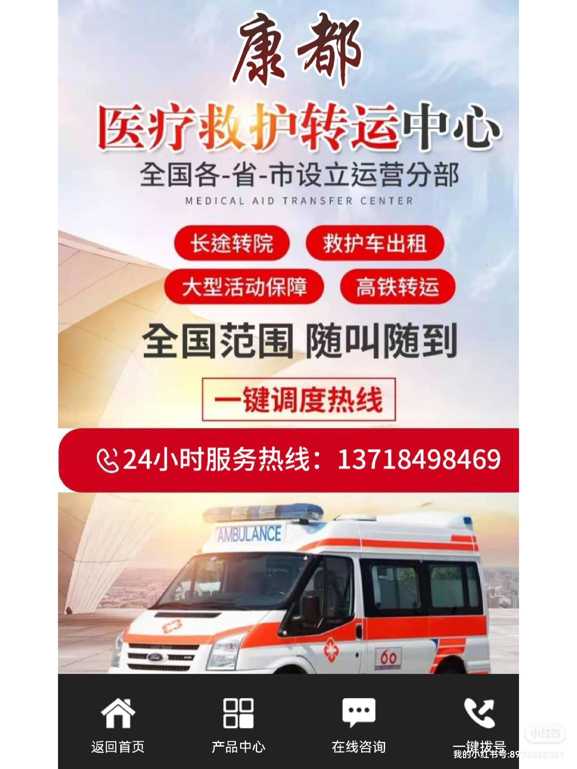 兴安盟120救护车长途转运告诉您救护车是一种在时间前提下为病情严重的伤者提供医疗保障的汽车,可以帮助那些缺乏运输或危急从现场转移的病人。特殊类型的救护机构,如医院机场,在紧急情况下提供旅行或度假,远离医院。养老院或护理院的老年人在提供长期护理时经常使用救护车。救护车的应用:一、救护车专车,专人负责,出车人员穿工作服。二、救护车上的医疗器械每次接送任务完成后,应进行检查、补充。三、保持救护车清洁,每次